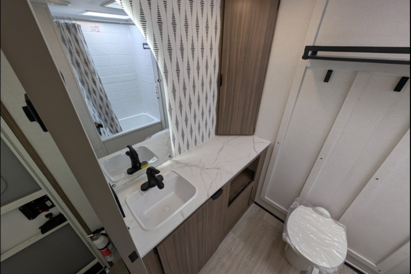STANDARD FEATURES: Retro/Metal Redesign - 4K Blade Lighting -  JBL Speakers – Interior/Exterior (Interior only on 26ICE) 4K Awning Blade Lighting -  TFL Cabinet Doors -  Heavy Duty Cabinet Hinges - Versa-Range - Stylish Backsplash - Update Luminous Arched Radius Panels - Expanded Kitchen Window -  Stylish Roller Shades - Elegant Curtain Rods and Curtains - Sleek Single Bowl Sink - Pet Step in Bedroom - Backlit Arched Radius Bathroom Mirror - Revamped Bedroom Layout - Enhanced Floating Shelves - TFL Black Walnut Entertainment Shelf - Pre-Installed TV Brackets (Living Area & Exterior) - Power Stabilizer Jacks (*effective units built after 9/15/2025).