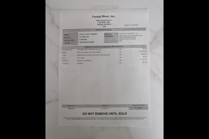 2026 FOREST RIVER STEALTH EVO 25ICE SPECS:
