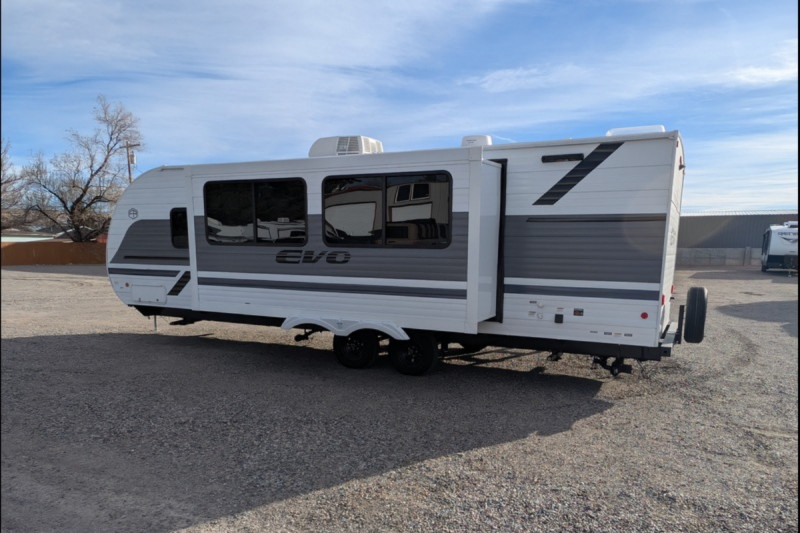 EVO HIGHLIGHTS: Versa Furniture -  Stow-N-Go Storage Solution -  MORryde™ StepAbove Double Step (Entry Door) -  TFL Cabinet Doors - Roof Mount Solar Prep -  Adjustable Textured Roller Shades - Enclosed Accessibelly -  Backlit Radius Bathroom Mirror - Built-In Laundry Hamper in Bedroom -  Back-Up Camera Prep -  JBL Stereo - Exterior Accent Lighting - Dimmable Interior LED “Blade Lighting” (Living Area) - LED “Blade Lighting” Under Awning -  60K On-Demand Tankless Water Heater -  5/8" Tongue & Groove Plywood Floor Decking Tufflex™ - PVC Roofing - Powder Coated I-Beam Frame - 3/8" Roof Decking (Walk-On) -  Cambered Chassis - Nitrogen Filled Tires - 2" Wall Construction,  16" (or less) on Center -  Aerodynamic Front Radius Profile .040 - Smooth Aluminum Front Cap - 5" Bowed Truss Roof Rafters -  2" x 2" Floor Joists 12" on Center - Triple Seal Slide-Out System - 13 Ply Cross Micro-Laminated Beam Header Above Slide-Out - Seamless Holding Tanks -  Color Coded Water Lines.