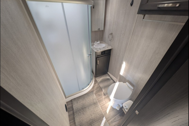 DELUXE PACKAGE (Forced Option): Fold Up Sofa (Rear) - Shower & Glass Enclosure - Stainless Galley Sink w/Pull Down Faucet - Microwave - Pillow Top Mattress w/Bedspread (Bedroom) - USB 12V Chargers (3) - Pleated Night Shades Throughout - Galley Counter Top Edge Lighting.